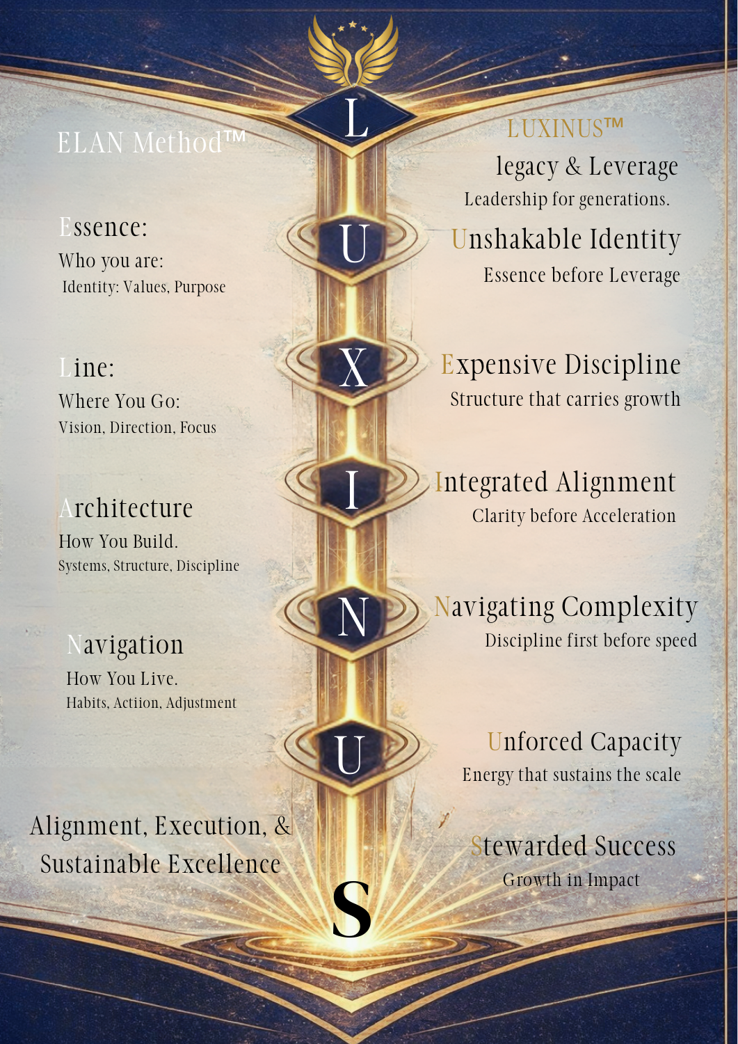 LUXINUS™ integrates AI-enhanced inner operating systems, business architecture, and lifestyle design so your vision, values, and ventures grow in unity.